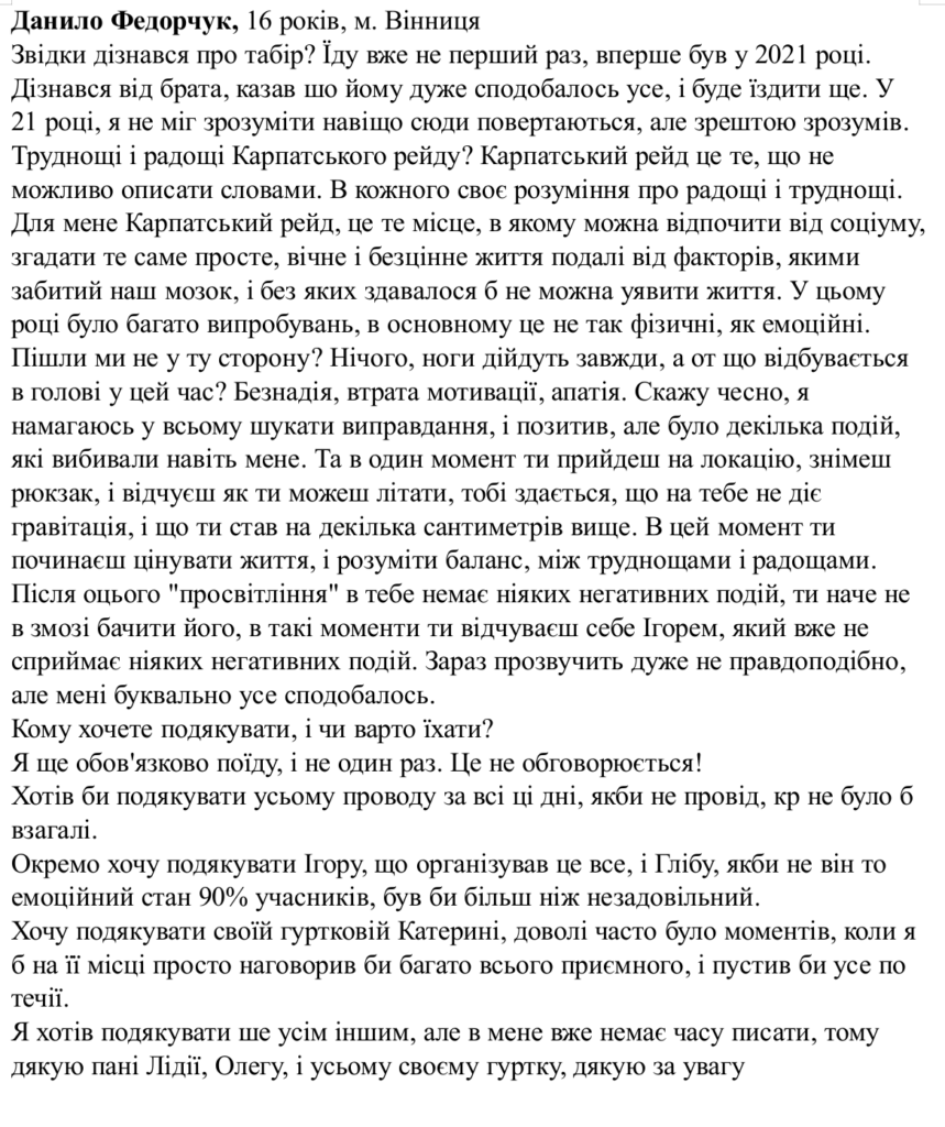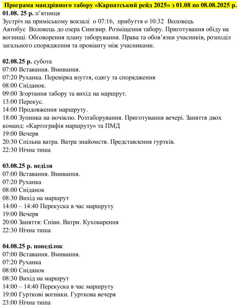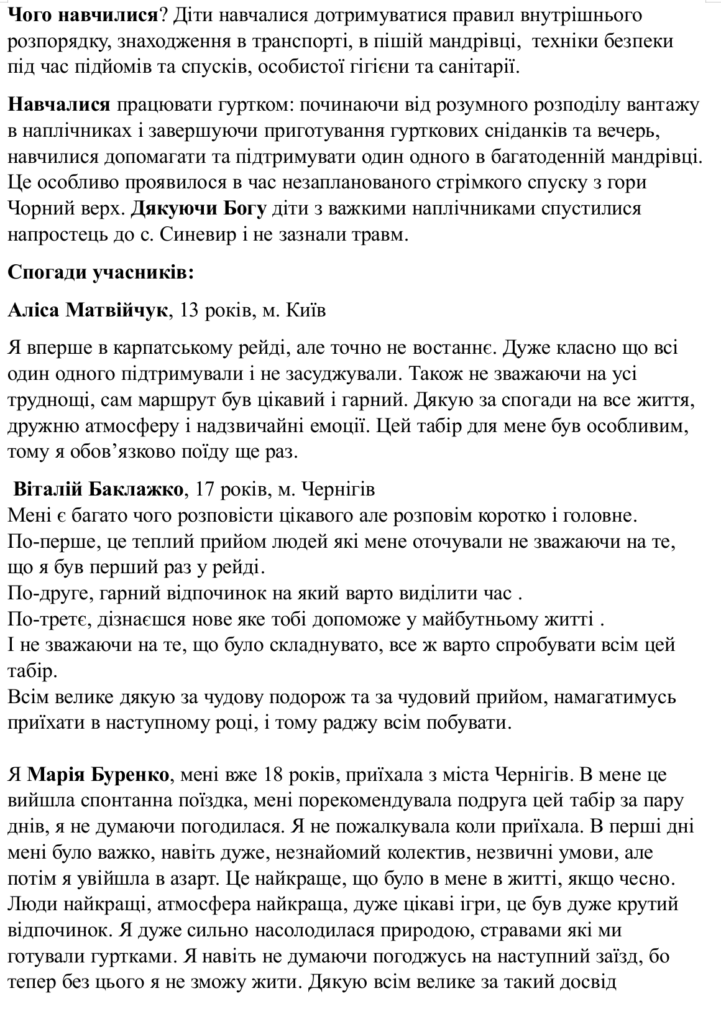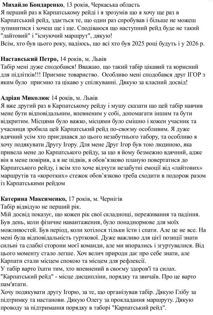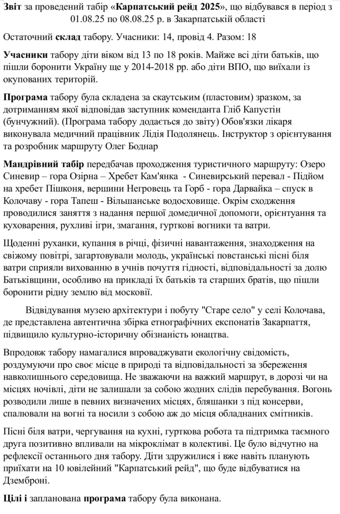 ТАБІР-2025 «Карпатський рейд»